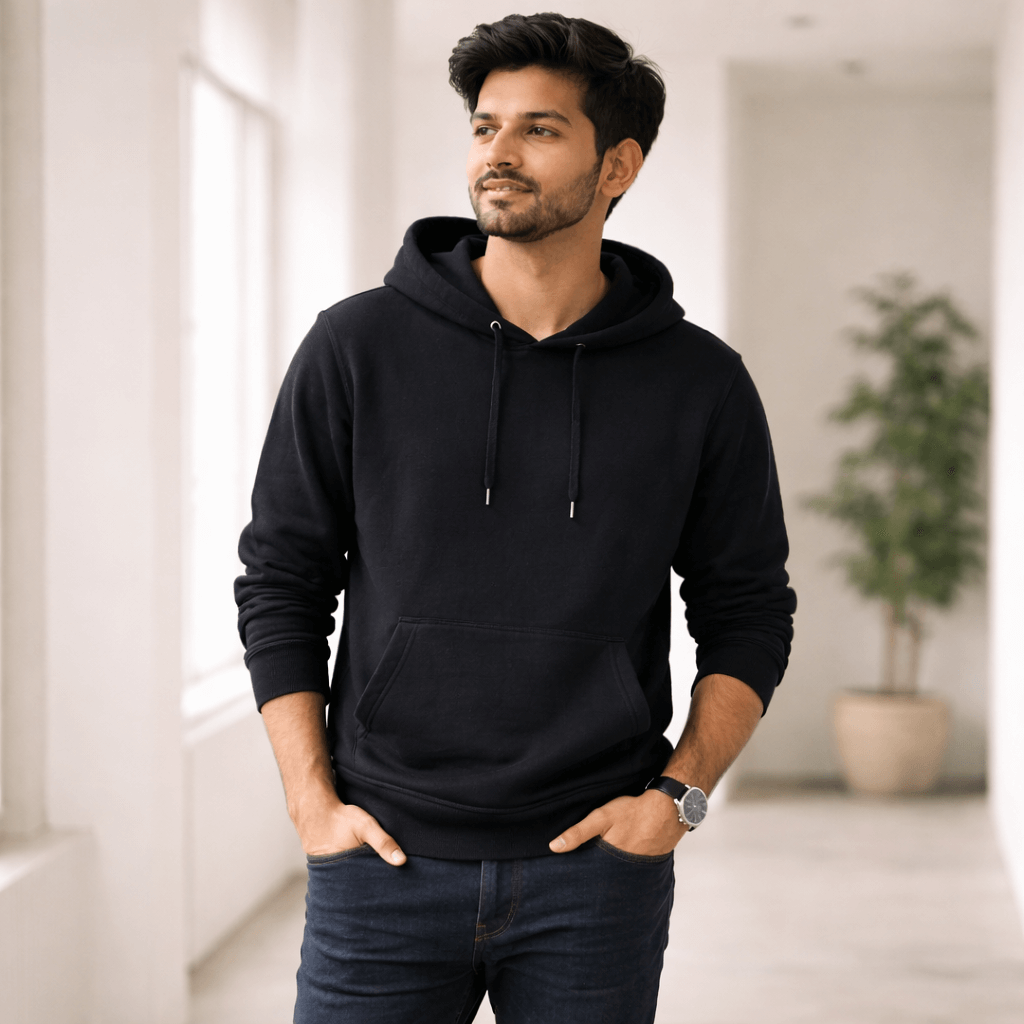 All our basics are made from high-quality cotton and cotton blends (180+ GSM for tees, 280+ for hoodies). Comfortable, durable, and built to last through repeated wear.